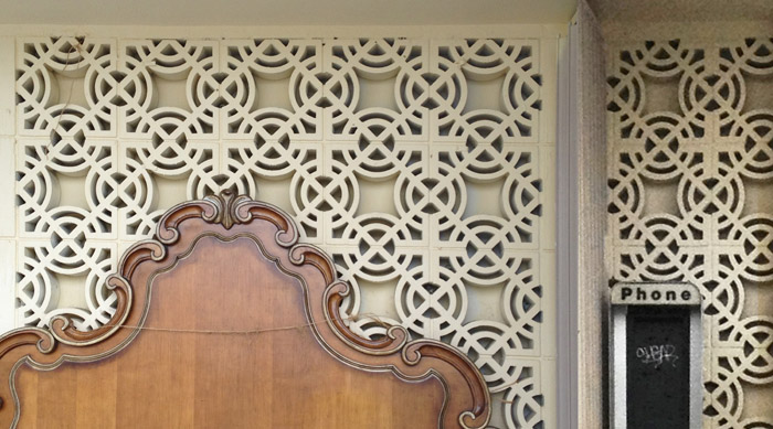 I’m not sure where this concrete block wall was, but it was part of a combination antique store/convenience store (antique store is a stretch). This is downright decorative for concrete!