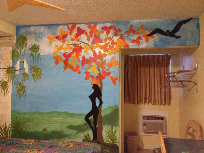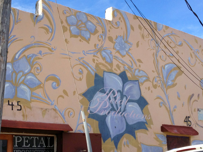 This building cracked me up because the text was painted on free-hand, and all the ‘grout lines’ are just painted.