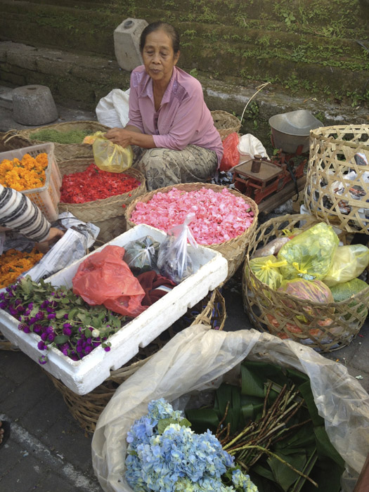 Offerings have created a small industry. Here you see people providing bulk product for offerings (leaves, petals, flowers, small food items) or, Â you can buy the entire offering as a done deal. Our guide said this would be a last resort as one would feel guilty if they relied on pre-made offerings too frequently.