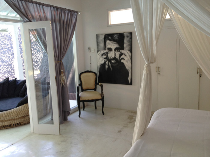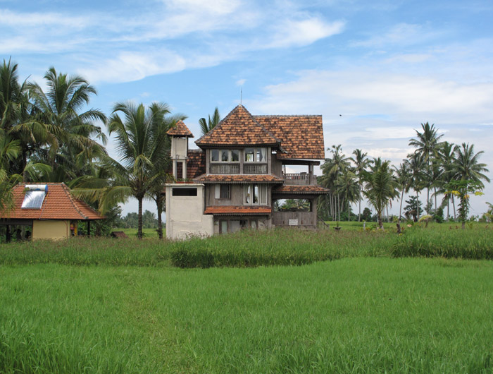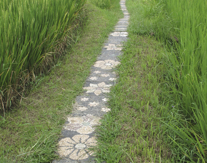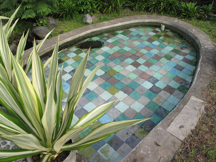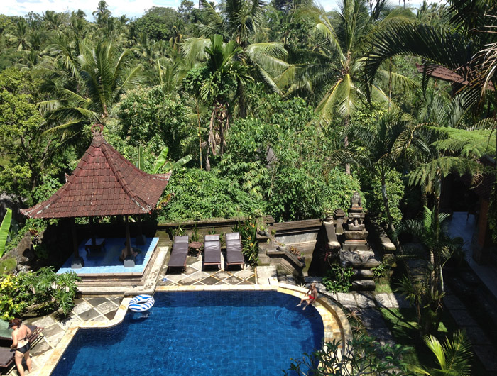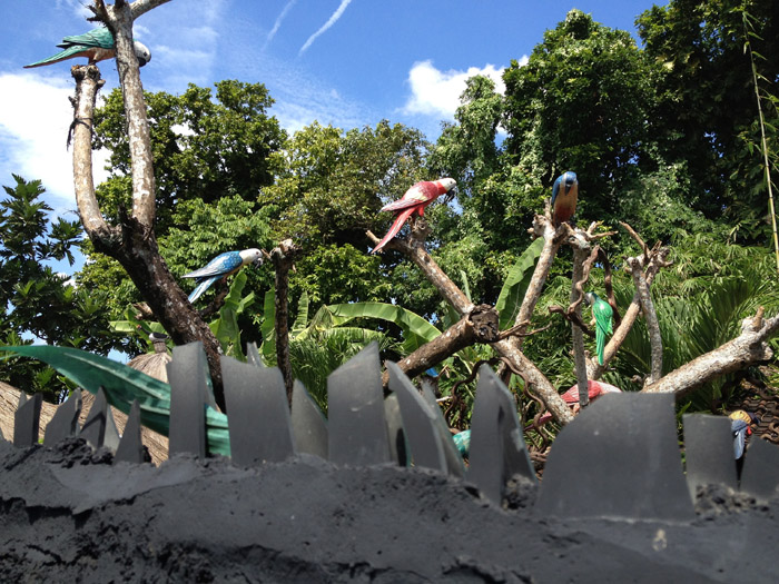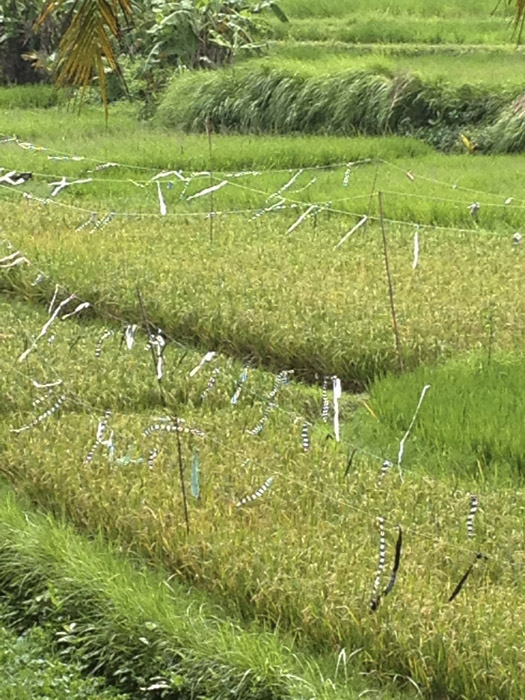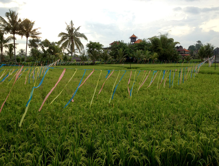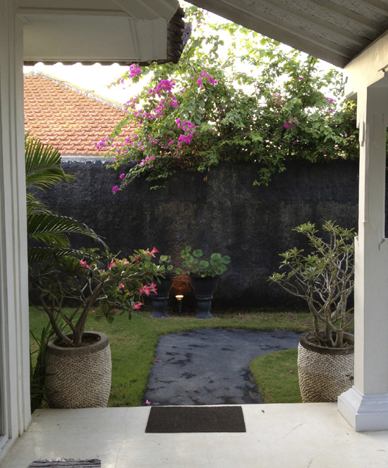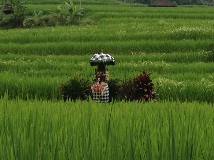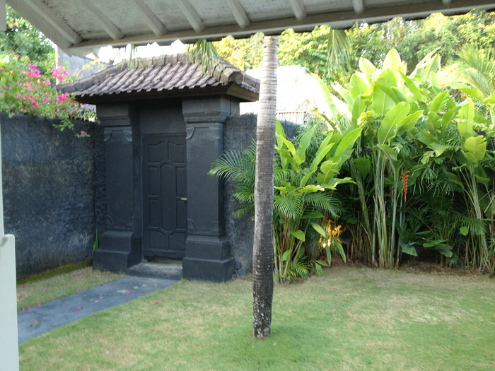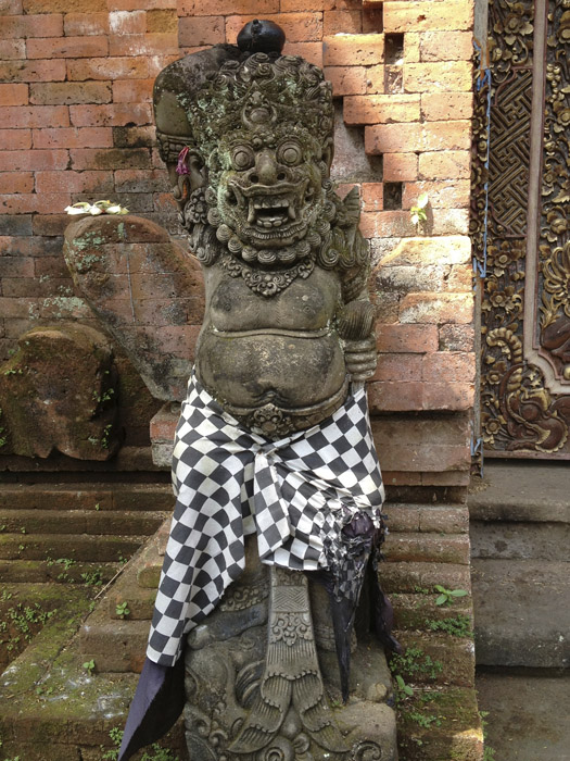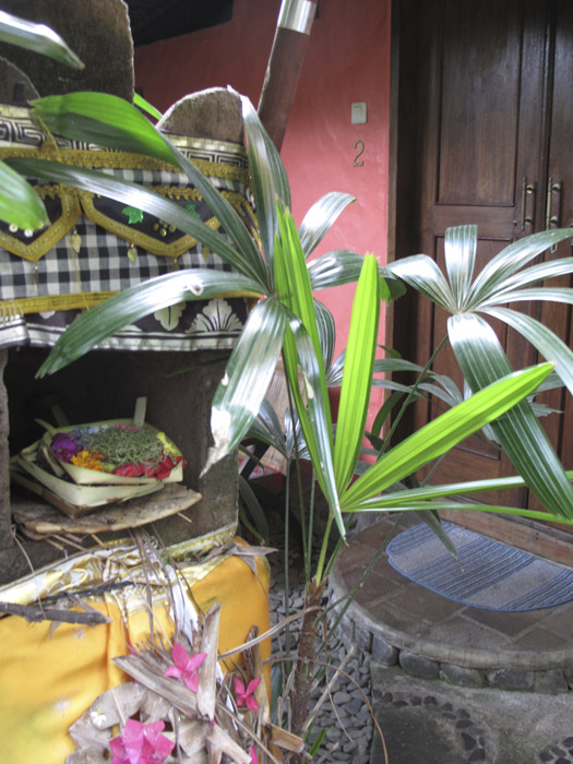 Most of the places I’ve stayed, I’ve had offerings placed for me at my entrance (I’m in a regular hotel now – so no offering). In this photo, that is my door in the background, and this little checkered, decorated tower seemed to be assigned to both my bungalow, and the one across from me. It received a new offering every day.