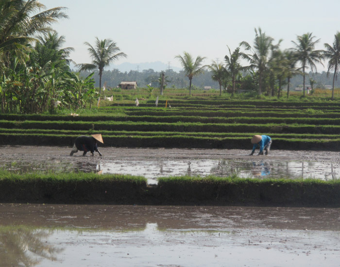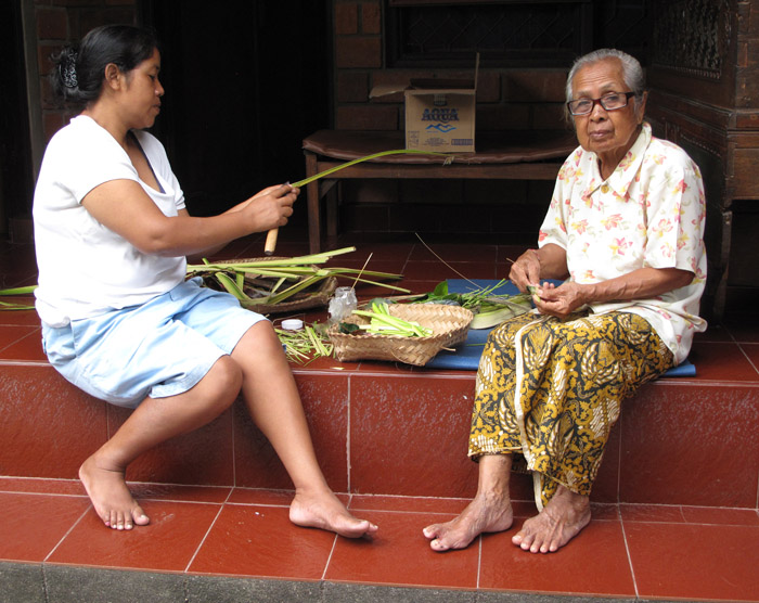 The offerings are the woman’s domain—as stated to me several times by balinese men and women. Below, you see the grandmother and another woman beginning preparation of the morning offerings at my week-long homestay called Nirvana Pension in Ubud.